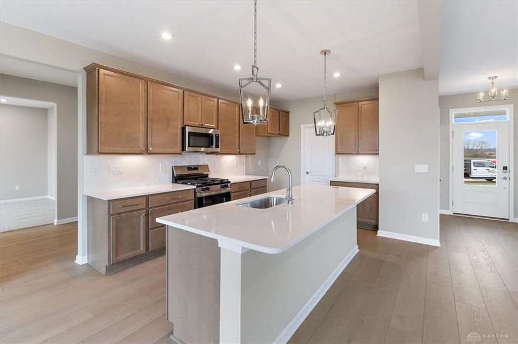 Gorgeous new Wyatt plan in beautiful Estates at Melody Parks featuring a welcoming covered front porch. Once inside, you'll fall in love with the open-concept design with an island kitchen with built-in stainless steel appliances, upgraded maple cabinetry with 42-inch uppers and soft-close hinges, gleaming quartz counters, a large walk-in pantry, and breakfast room with walk out access to the back patio. All open to the spacious family room. Private study off entryway with double doors. Tucked away first floor rec room. Upstairs owner's suite features an attached private bath with dual vanity sinks, garden tub, walk-in shower and large walk-in closet. 3 additional bedrooms, each with a walk-in closet, large loft, second floor laundry room and a centrally located hall bathroom complete the second floor. Full basement with full bath rough-in. Attached two car garage.
