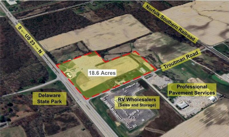Prime Development Land on US 23 just north of the City of Delaware. Petroleum/Convenience, Industrial, or other development.Property Highlights - 18.6 Total Acres of land with a hard corner on Troutman Road - 29,000+ vehicles per day traffic count on US 23 - Utilities include Electric, Del-Co Water, Natural Gas - Across US 23 from Delaware State Park (signalized intersection) and across Troutman Road from RV Wholesalers which includes boat and RV storage (both with extensive convenience and fuel traffic) - 820' of frontage on US 23 and 1,000' of frontage on Troutman Road - The 7 Acre Property currently has boat and RV storage that could be continued during an extended development process for additional income or incorporated into a new development and expanded.